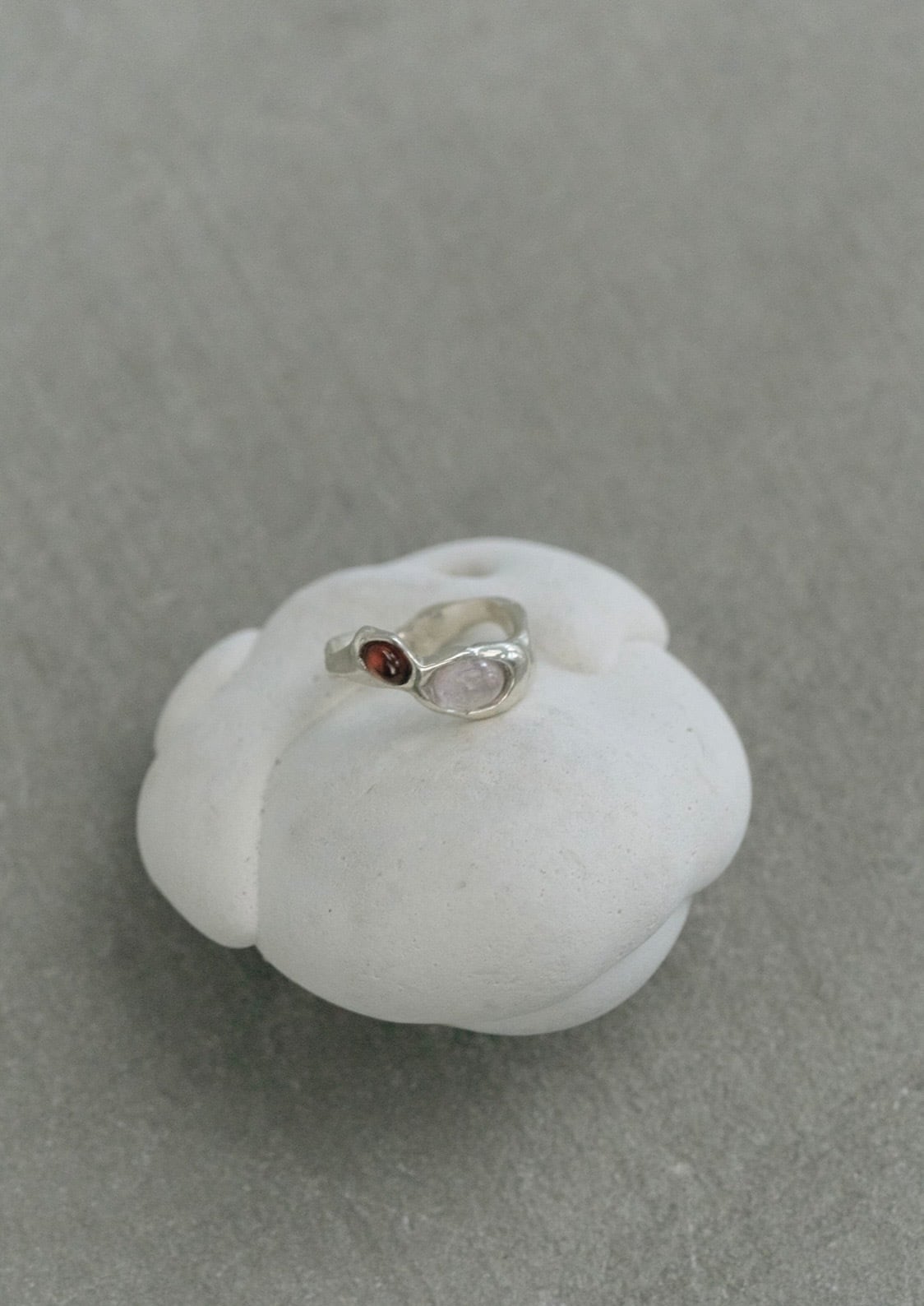 ガーネットの深い赤と、ピンクスピネルのやわらかな輝きがあり、有機的なフォルムのシルバーがフェミニンさと凛とした存在感を引き立てる天然石リング。 指に馴染むよう丁寧に仕立てた、一点ものです。 【素材】silver925 【サイズ】13 ✴︎ こちらの商品は、サイズ変更などのご変更なくご購入いただいた場合、3日以内の発送になります、変更の場合は10日以内に発送致します ✴︎ジュエリーのケア用として、シルバークロスをお付けいたします