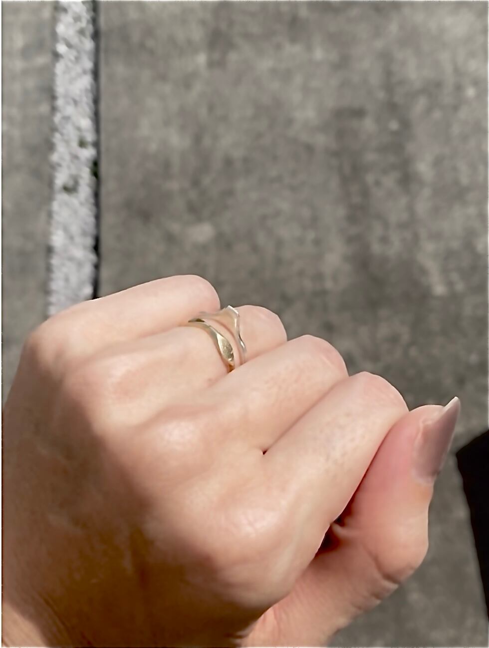異なるデザインのリングを重ねることで、個性的なスタイルを演出できます。